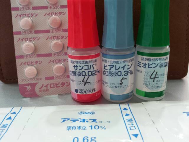 左から、ノイロビタン、サンコバ点眼、ヒアレイン点眼、ミオピン点眼